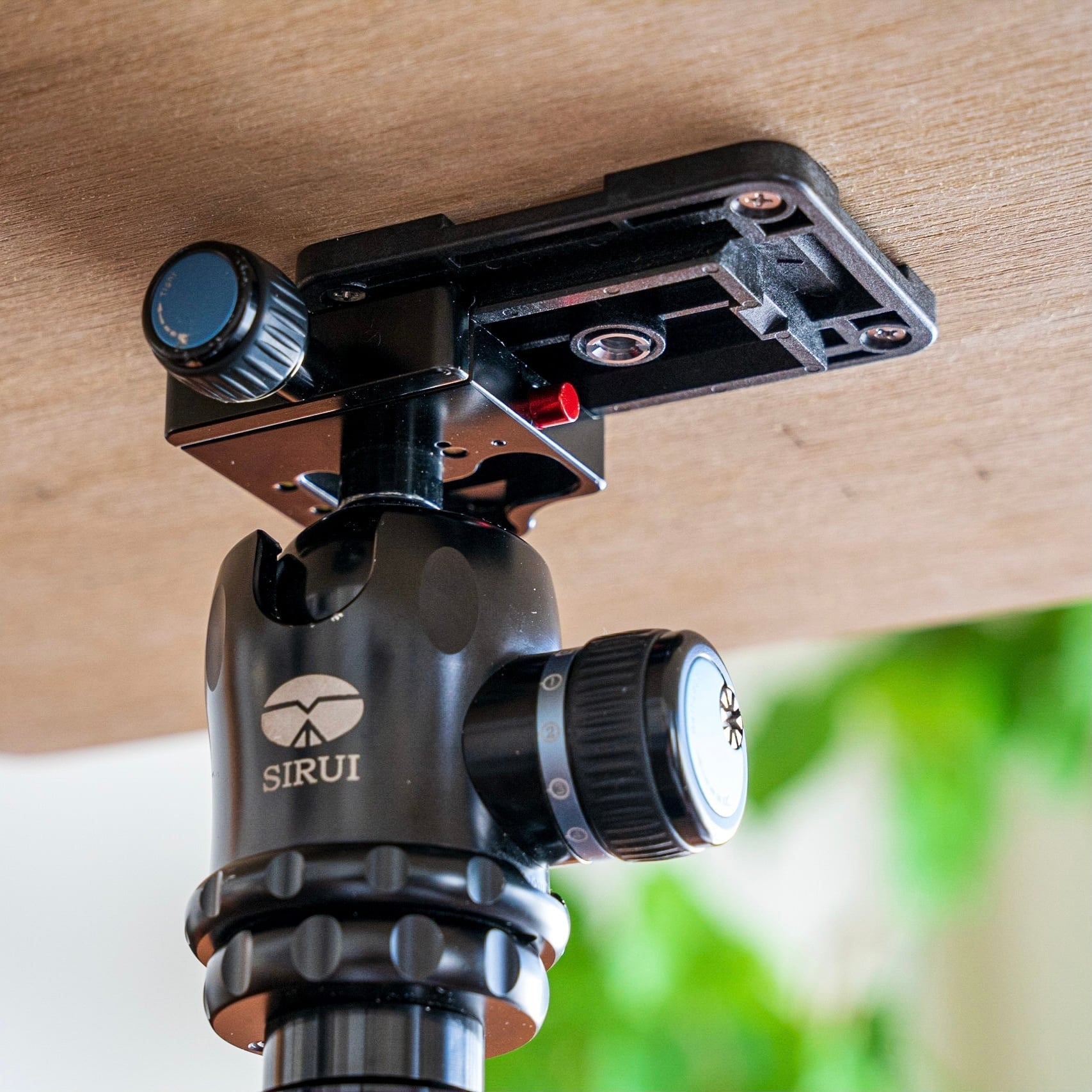 三脚をテーブル化するアイデア自体は昔からあります。でも、手元にある三脚はどれもアルカスイス互換。市販の取り付けパーツは独自規格か1/4インチネジ前提ばかりで、「これじゃ簡単に付け外しできないじゃないか」とプチ不満が積もっていました。