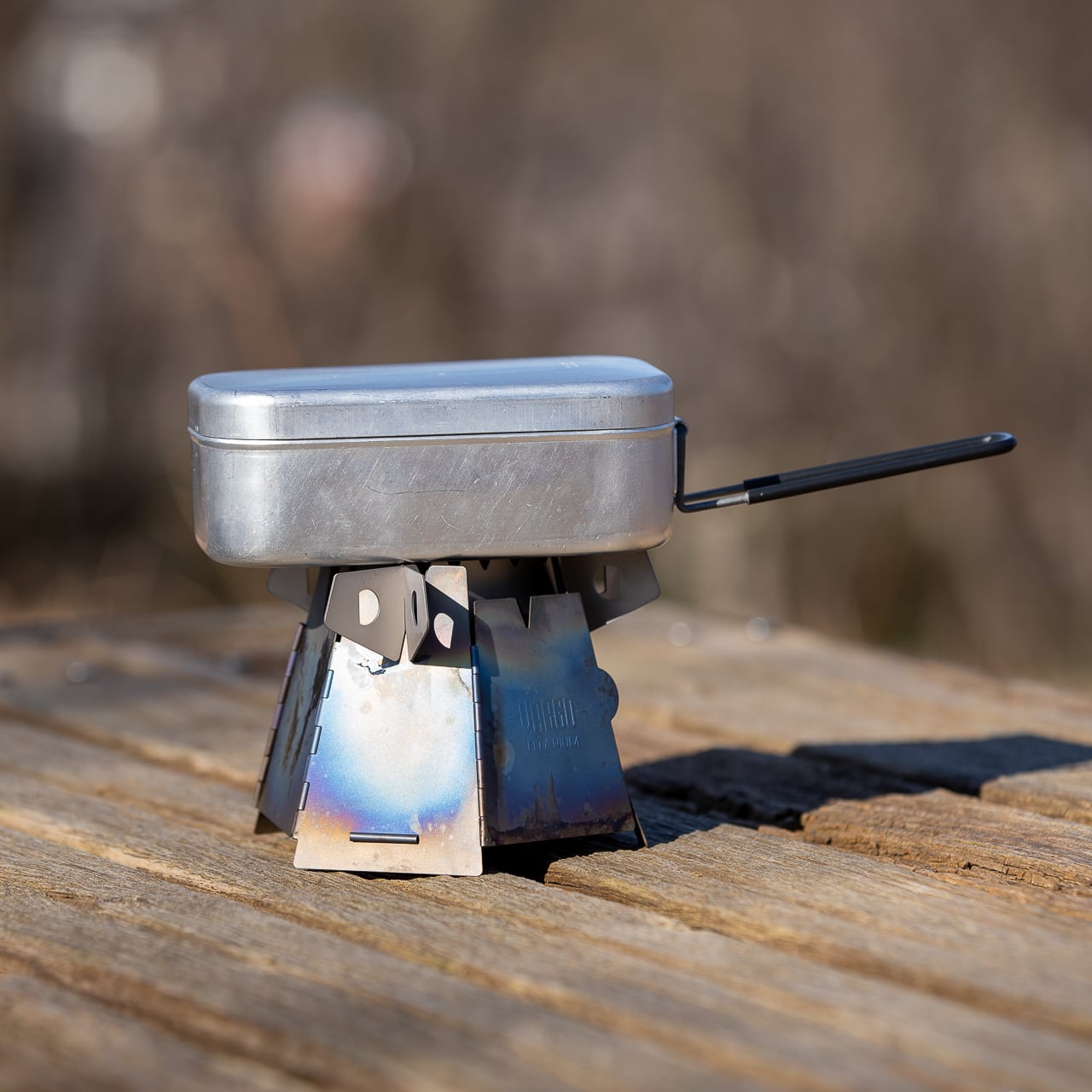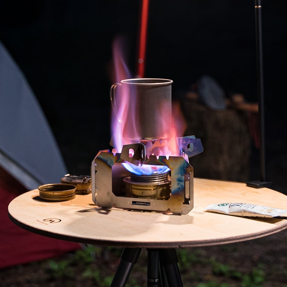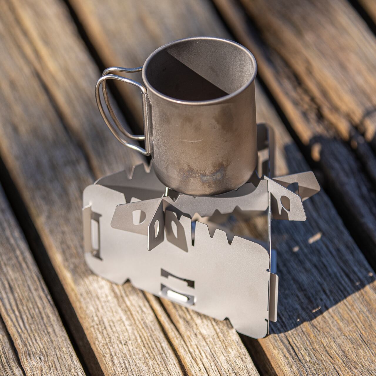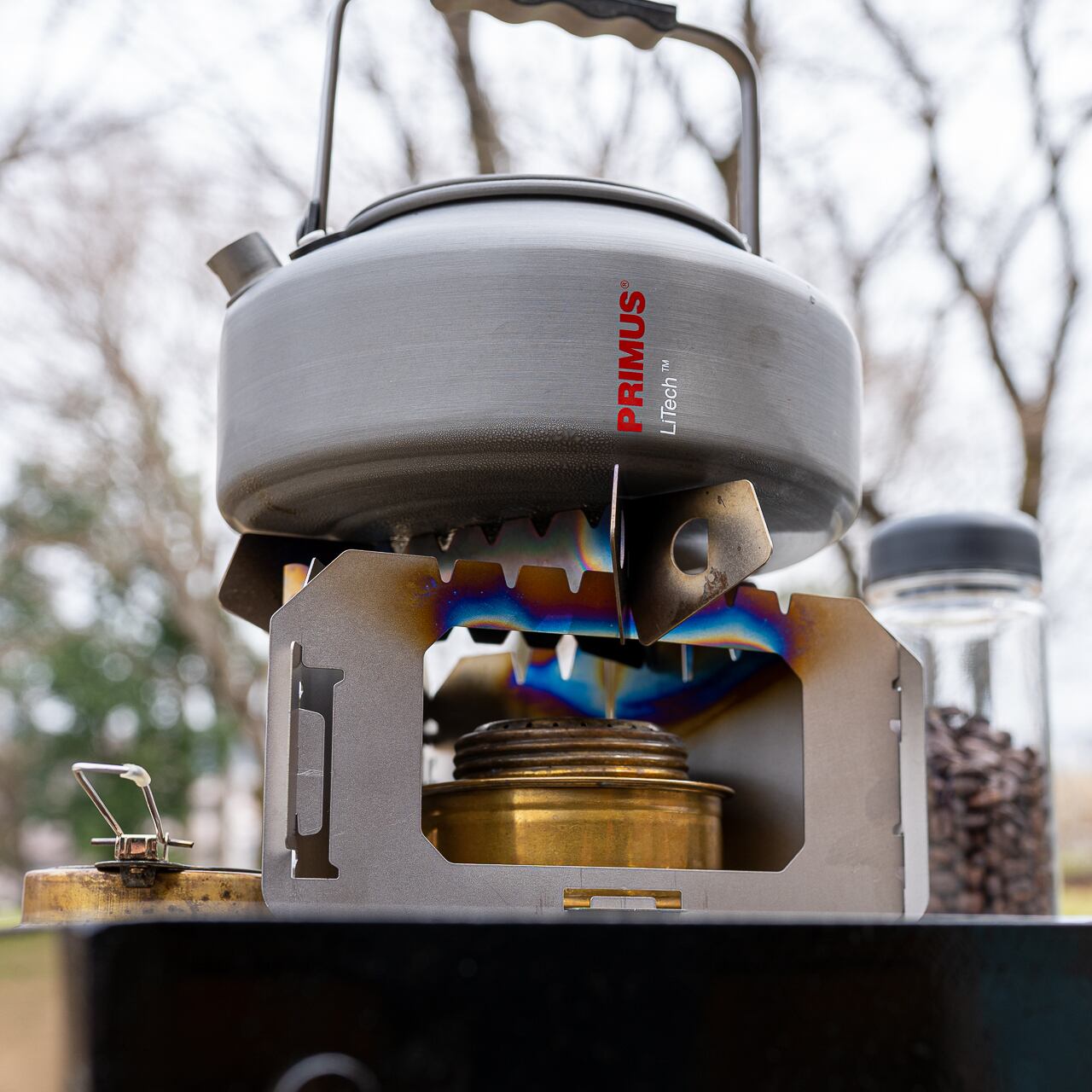 ソロキャンパーに大人気のVARGOヘキサゴンウッドストーブ。その弱点だった「小型クッカーの安定性」と「構造からのガタつき」を解決するためにデザインした、marupeinetオリジナルのチタン製カスタム五徳です。軽量・コンパクトながらも、ストーブ全体の剛性感を大きく高め、安心して調理が楽しめます。