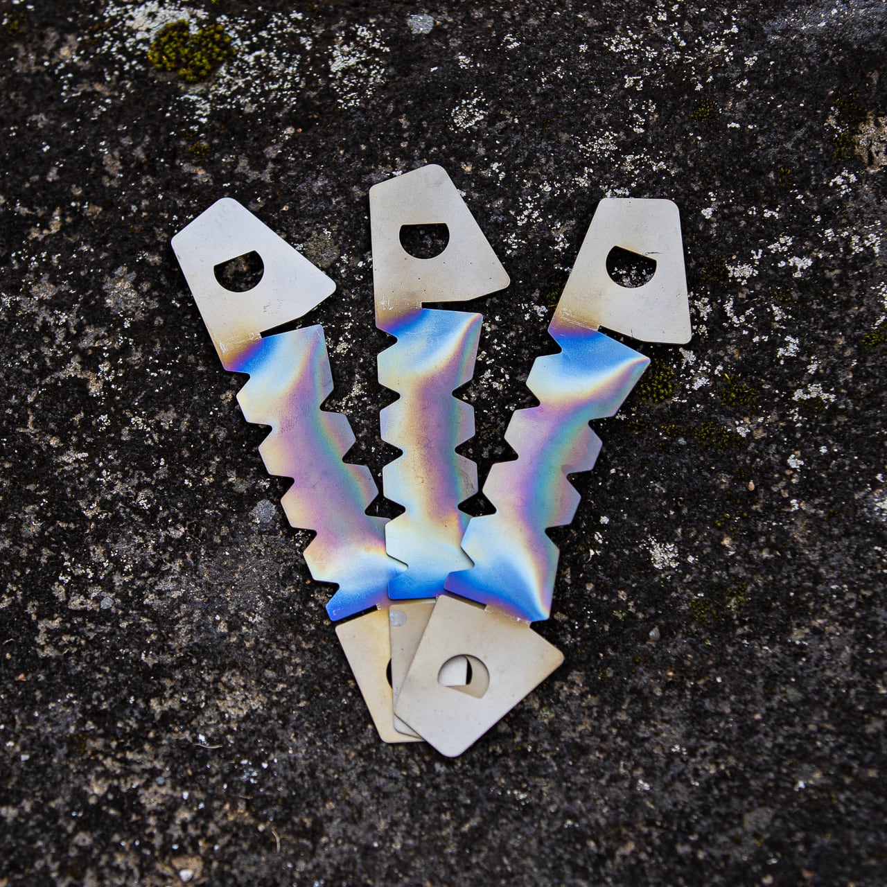 ステンレス版が好評を博すなか「チタンで作ってほしい」との声が多数寄せられ、自身も最初からチタンに憧れていたこともあり、工場探しを開始。加工を断られたり見積もりに驚いたりしながらも諦めず、ようやく協力してくれる業者を発見。長い道のりを経て、2017年ついにTRIANGLE TRIVET TITANIUM(T3)が完成します。